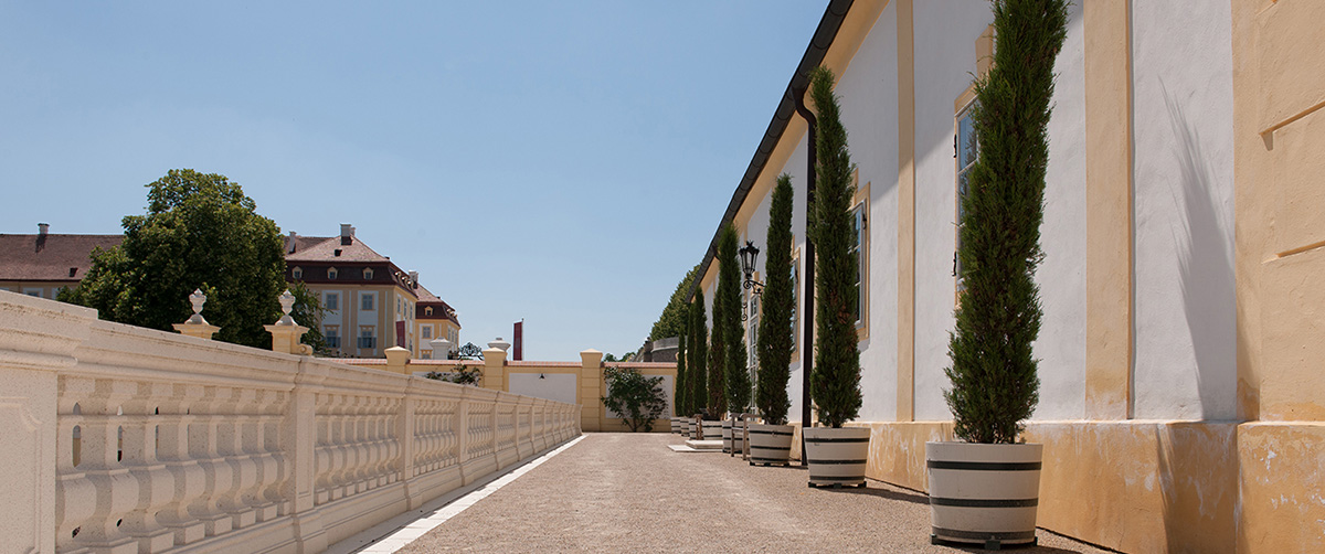 Schloss Hof ist Österreichs größter erhaltener barocker Landsitz. Die barocken Gartenanlagen des Schlosses wurden originalgetreu nach Plänen und Gemälden wiederhergestellt sowie die Grün- und Freiflächen der historischen Gesamtanlage für die zeitgenössische Nutzung als Gutshof und Ausflugsziel gestaltet. Ausgangsbasis war die Geschichte der historischen Anlage. Insbesondere die sieben barocken Terrassengärten in Verbindung mit den Orangeriegärten im barocken Meierhof bildeten das inhaltliche Rückgrat.