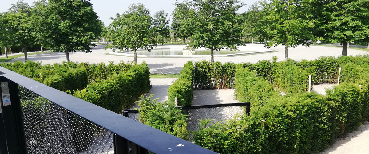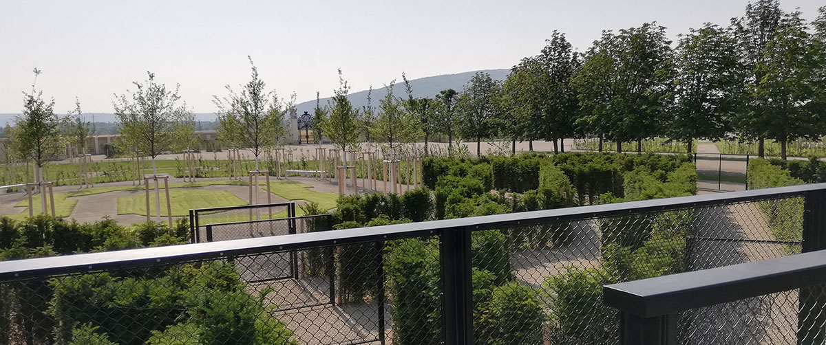 - Bauphase II: Terrasse 5 – 4.438m², Terrasse 6 – 16.636m², barocker Gutshof Orangerieparterre – 1.338m²