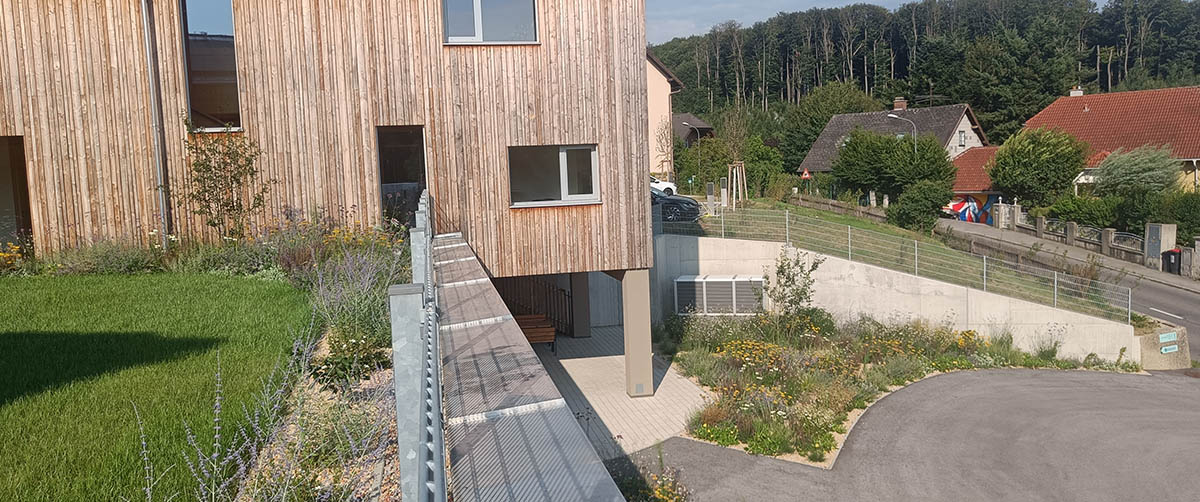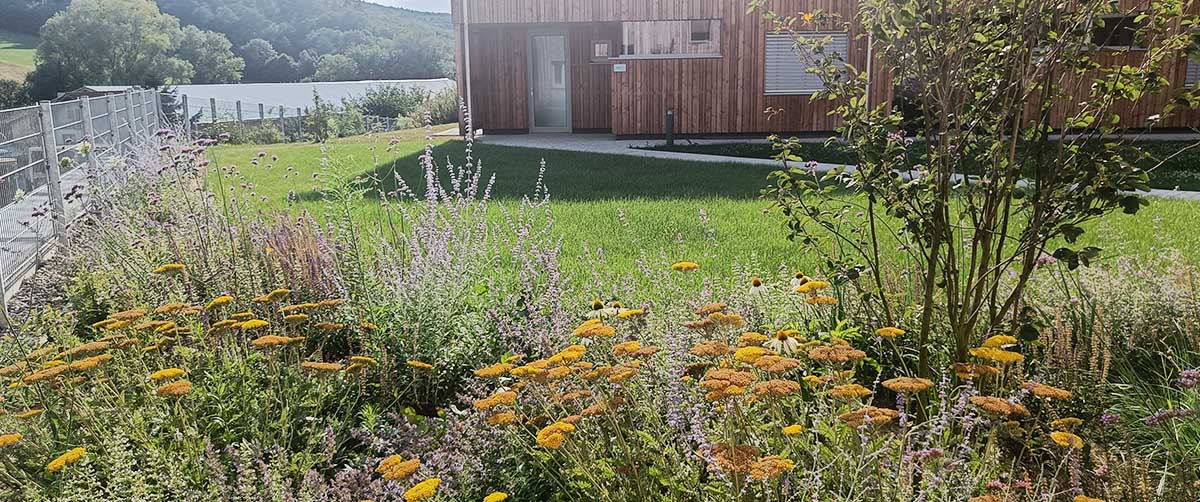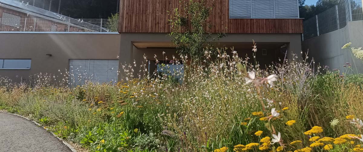 Die Gestaltung der naturnahen Außenanlagen des neu gebauten Betriebsstandortes der Österreichischen Bundesforste in Gablitz vereint gestalterisch die Bereiche Wohnen und Arbeiten. Das Gebäude wurde ökologisch, nachhaltig und energieeffizient in Massivbauweise ausgeführt. Bei er Gestaltung der klimafitten Freiräume stehen Nachhaltigkeit und Biodiversität an oberster Stelle.