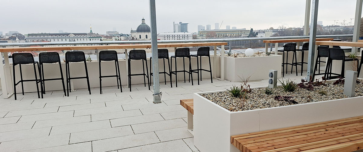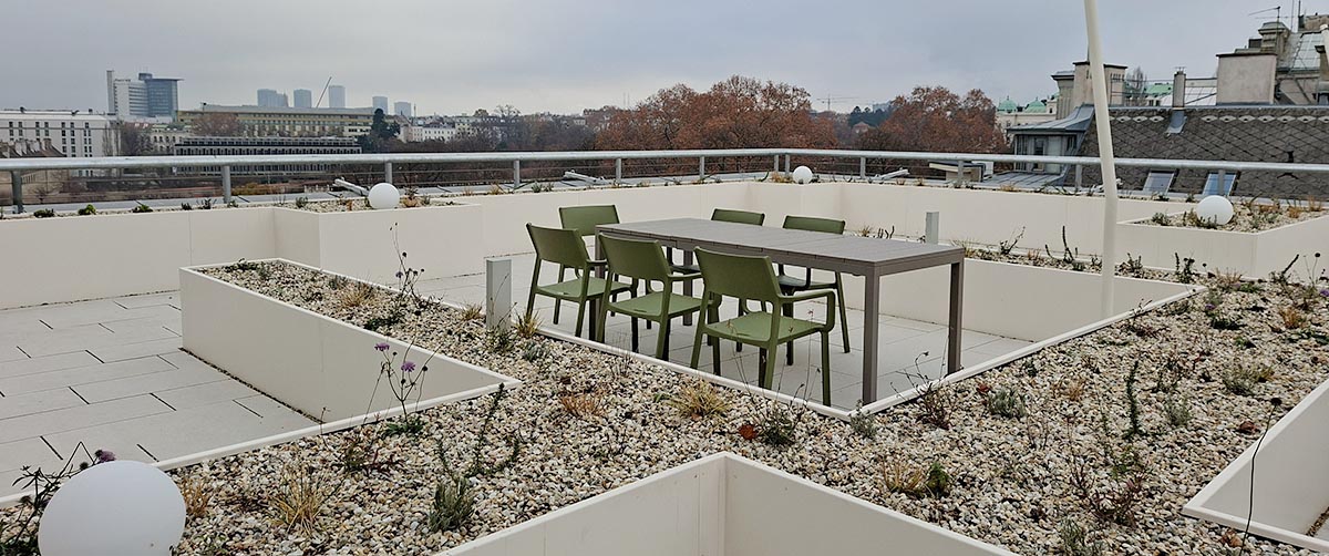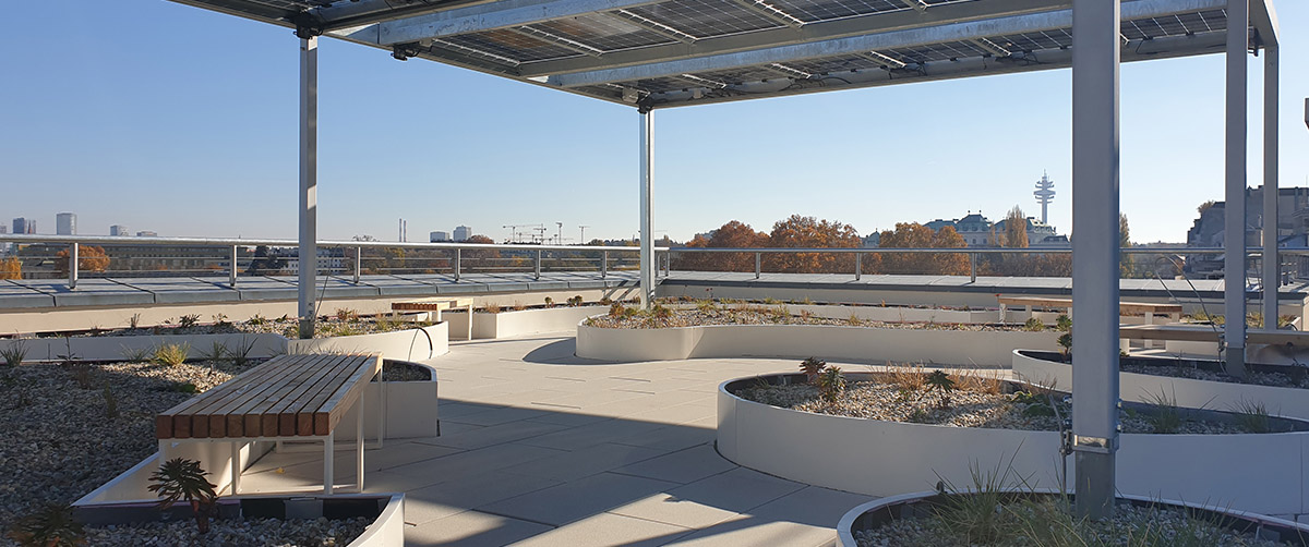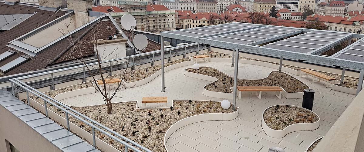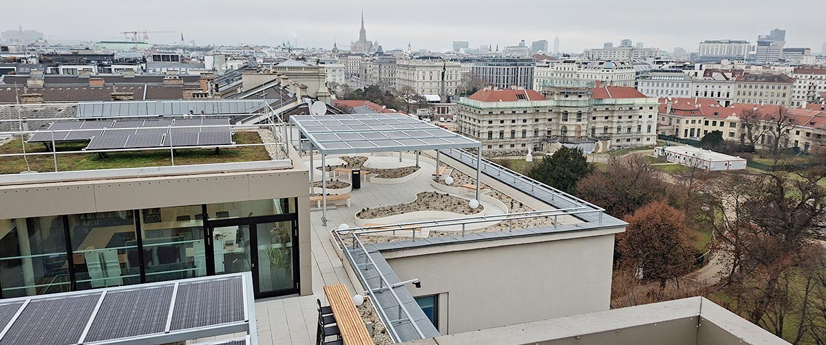 Die Dachlandschaft der Arbeiterkammer Wien zeigt exemplarisch, wie technische Innovation, ökologische Qualität und soziale Nutzung in einem integrativen Gesamtkonzept zusammengeführt werden können. Ein Leuchtturmprojekt für klimaresiliente Stadtentwicklung – und ein aktiver Beitrag zu einer nachhaltigen Transformation des urbanen Raums.
