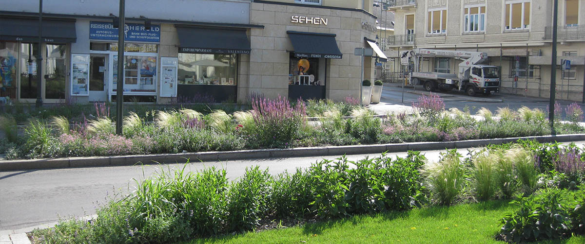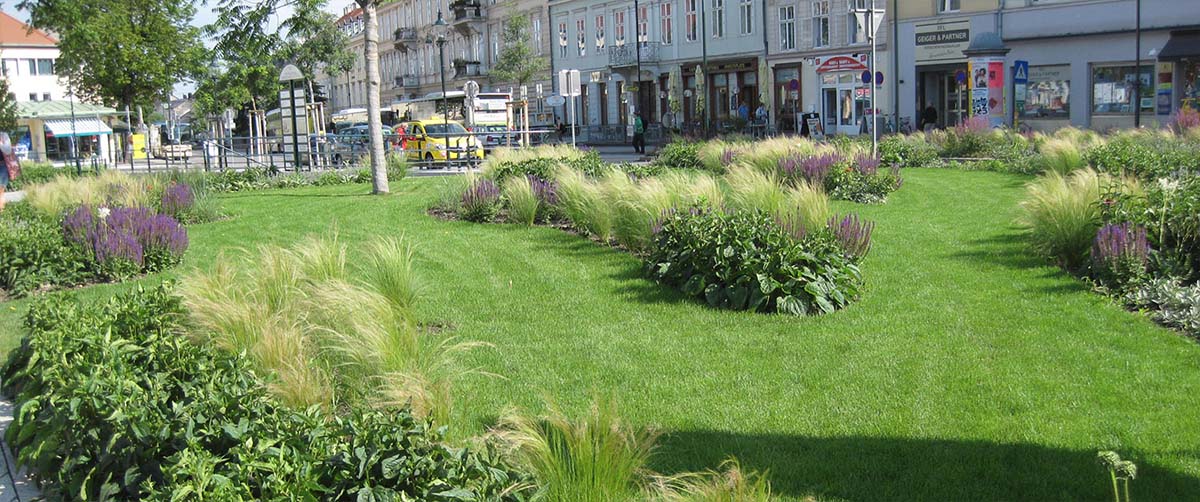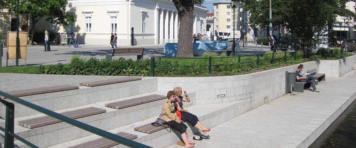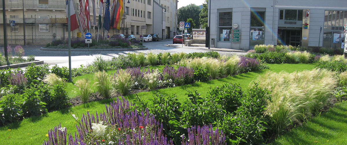 Die Neugestaltung des Josefsplatzes wurde 2013 durch die Freilegung des Mühlbaches von den lottersberger messner architekten angestoßen. So entstand nicht nur ein attraktiver Wasserlauf mit Steinstufen, die als beliebte Sitzmöglichkeiten dienen, sondern ebnete den Weg, den Platz in eine grüne und belebte Begegnungszone zu verwandeln. Dazu wurde der Ölzant-Brunnen zum Bahnhof umgesiedelt, um eine offene Platzstruktur zu schaffen. Großzügige Pflanzbeete rahmen den Platz und leiten die Besucher. Eine Mischung aus Rasenflächen und mäandrierender Gräser-Staudenbepflanzung schaffen Dynamik und geben immer wieder neue Blicke frei. Die Pflanzen sind selbstverständlich an die Standortgegebenheiten angepasst und tragen zum Regenwassermanagement bei. Verschiedene Sitz- und Liegeelemente transformieren den Josefsplatz von einem Durchzugsort zu einem Ort des Verweilens und Entspannens. Aber auch regelmäßige Veranstaltungen und Märkte beleben den Platz. Besonders in der Adventszeit verwandelt er sich in einen stimmungsvollen Weihnachtsmarkt inklusive festlicher Beleuchtung.