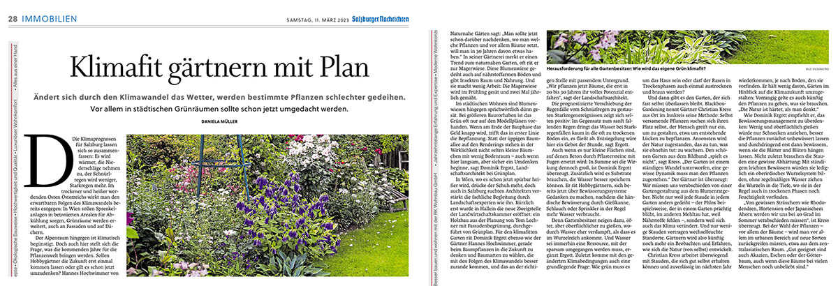 Unser Dominik Ergott wurde von der freien Journalistin Daniela Müller für die Salzburger Nachrichten zum Thema „Klimafitte Grünräume“ befragt.