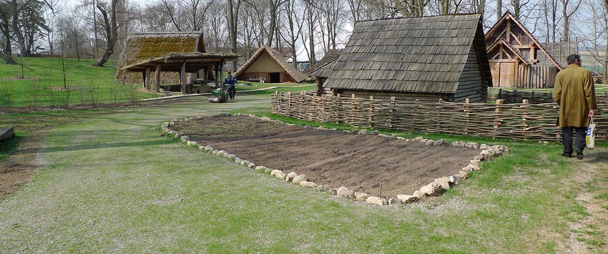 Die einzelnen Bereiche wurden durch heimische Strauchpflanzungen voneinander getrennt. In enger Zusammenarbeit mit dem Institut für Archäobotanik der Universität für Bodenkultur Wien wurden die Pflanzen, die in der jeweiligen Zeit in Mitteleuropa heimisch waren, ausgewählt und schließlich am Freigelände angepflanzt. Durch die Hanglage im Freigelände wurde am feuchten Hangfuß eine Sickermulde mit typischen feuchtigkeitsliebenden Blühstauden wie Angelika, Dost und Blutweiderich angelegt.