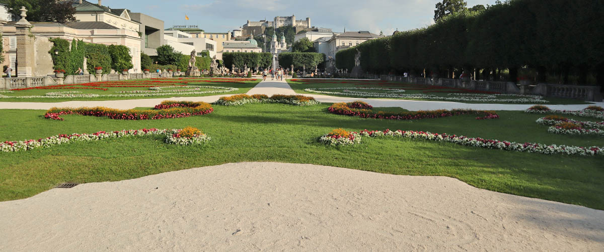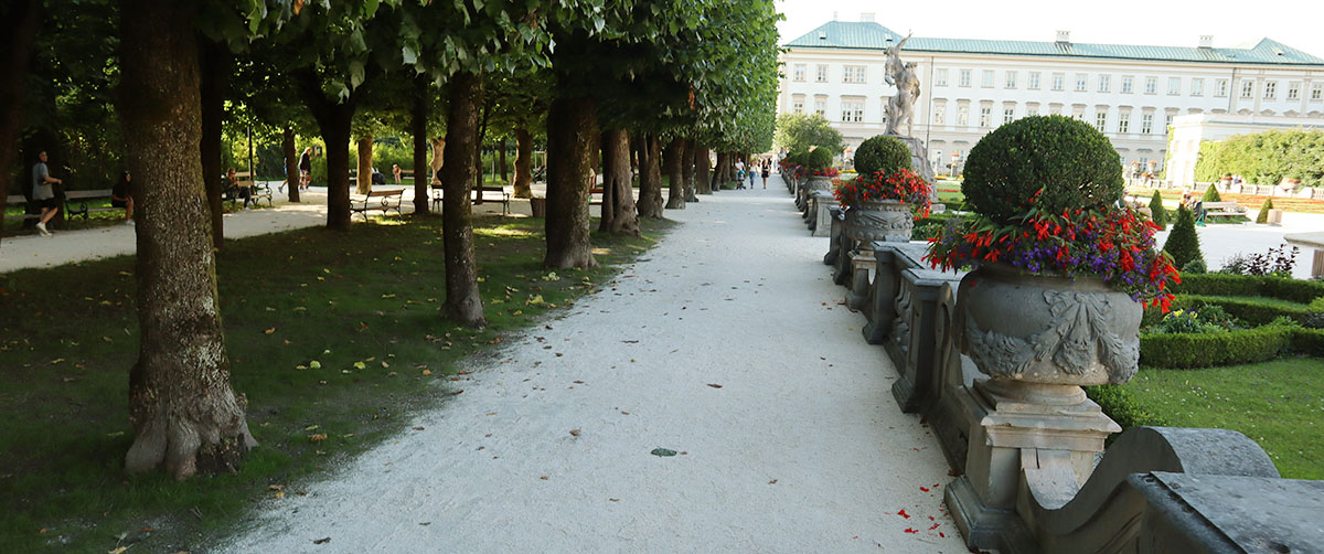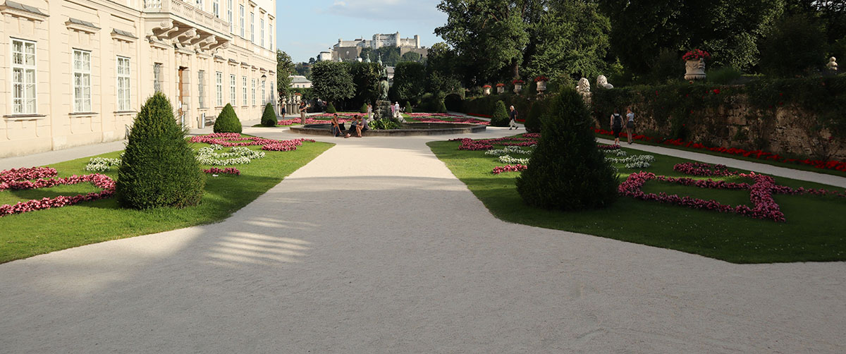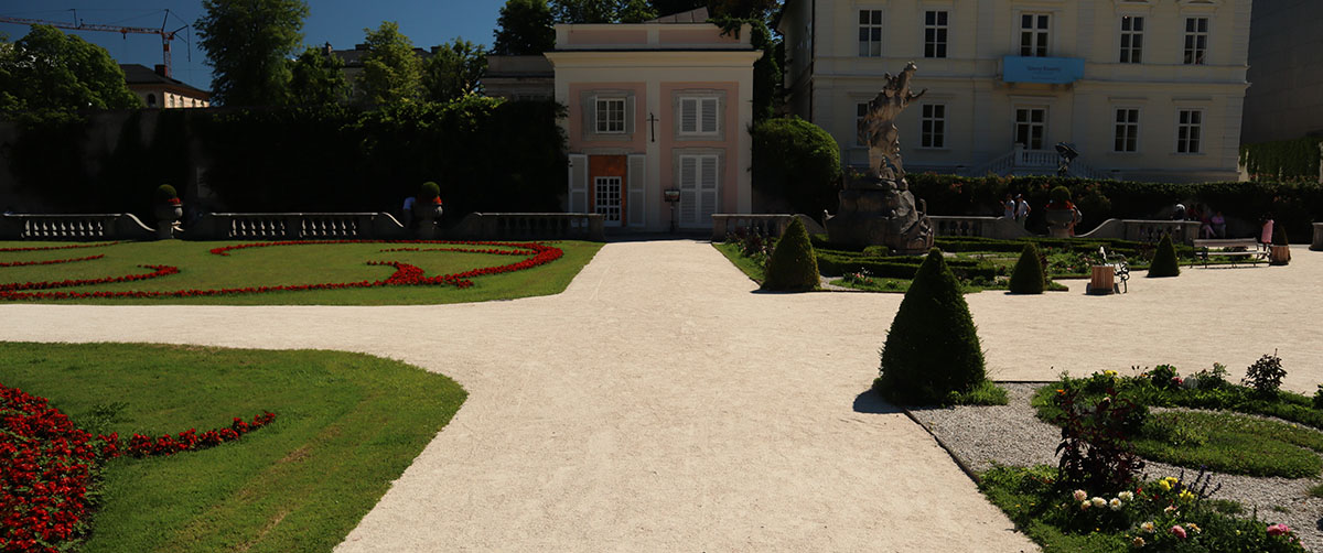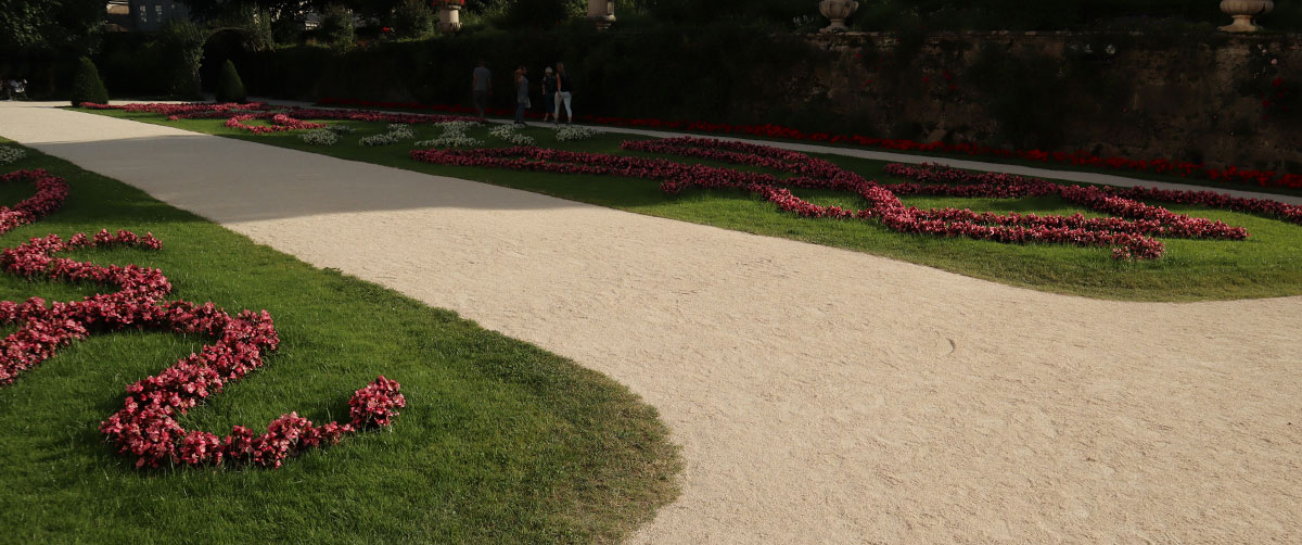 Die historischen wassergebundenen Wege (WGD) im Garten von Schloss Mirabell in Salzburg Stadt wiesen Schäden auf, die teilweise bis in das Gesamtgefüge des Wegeaufbaus reichten und im regelmäßigen Pflegebetrieb nicht mehr behoben werden konnten. Daher wurde eine Sanierung der gesamten Wegedecke erforderlich. Um den laufenden Betrieb möglichst wenig zu beeinflussen und das Ausmaß der Sanierung im Rahmen zu halten, nahmen wir zunächst eine detaillierte Schadensermittlung vor. Die Mängelfeststellung diente uns als valide Grundlage für unsere weiteren Projektschritte: der Ausarbeitung eines Sanierungskonzeptes, Behördenabstimmungen, Sanierungsplanung und Überwachung der Mängelbehebung.