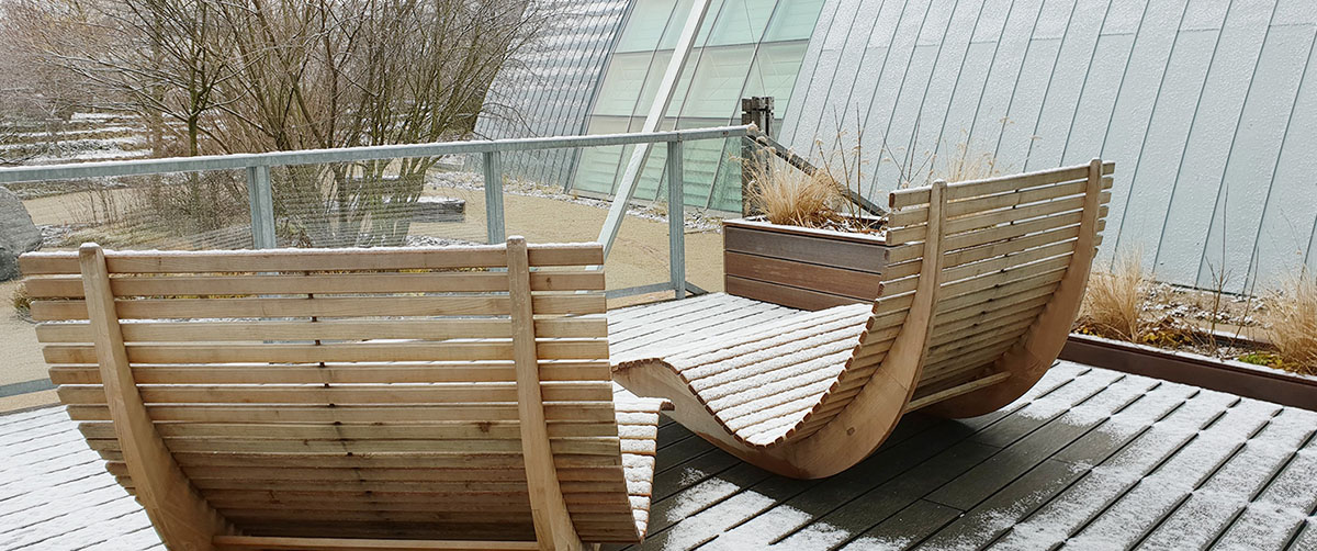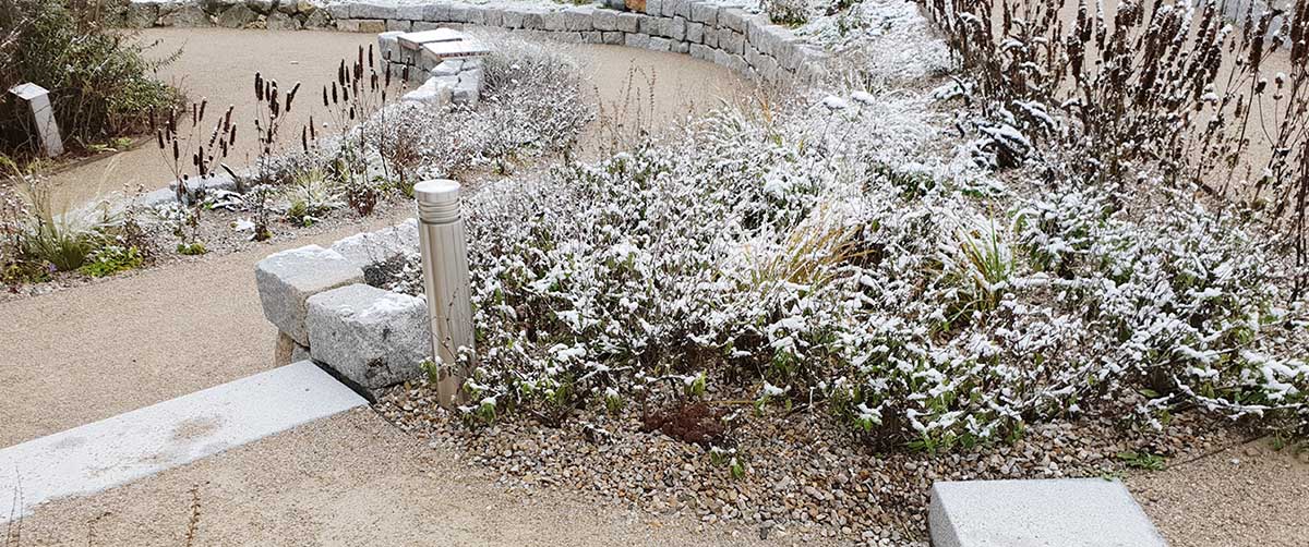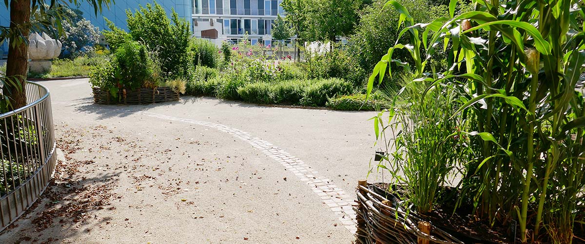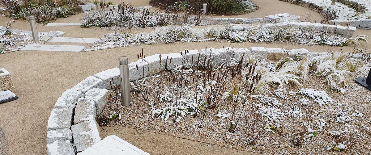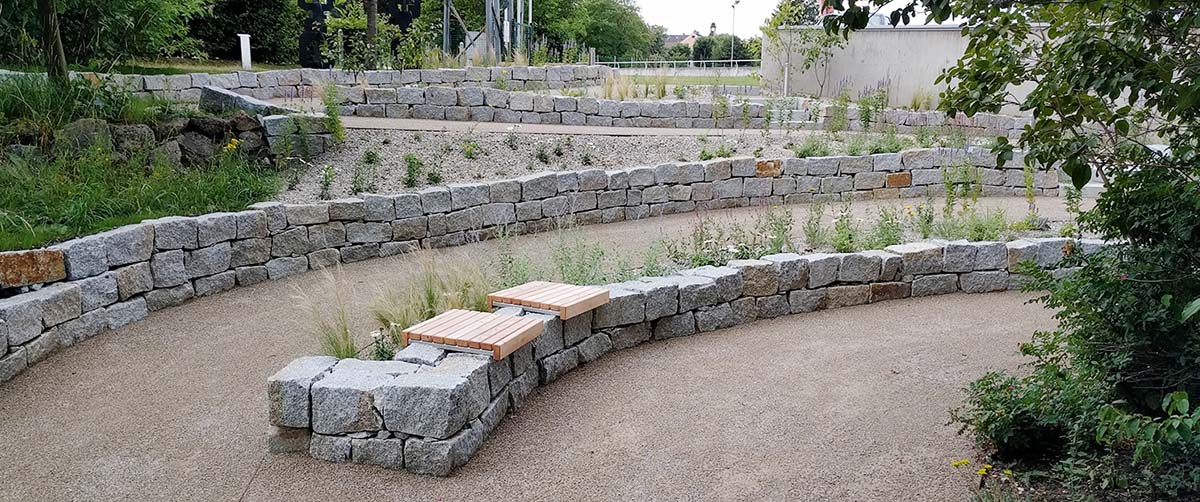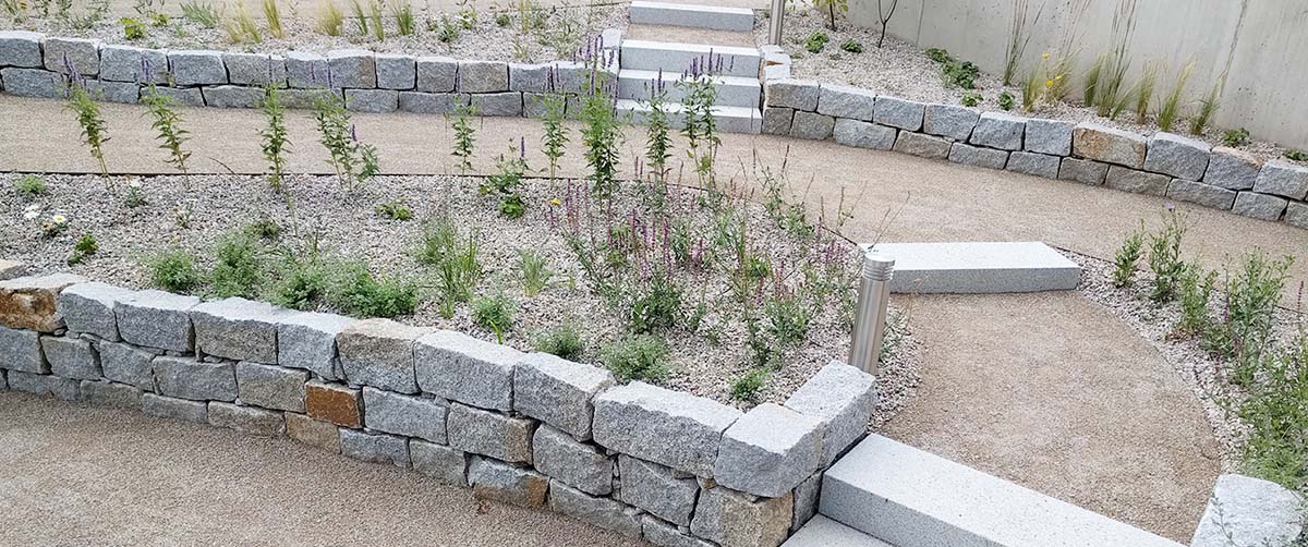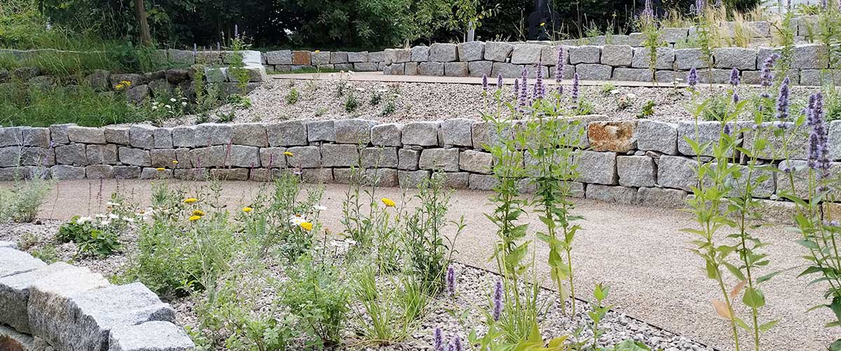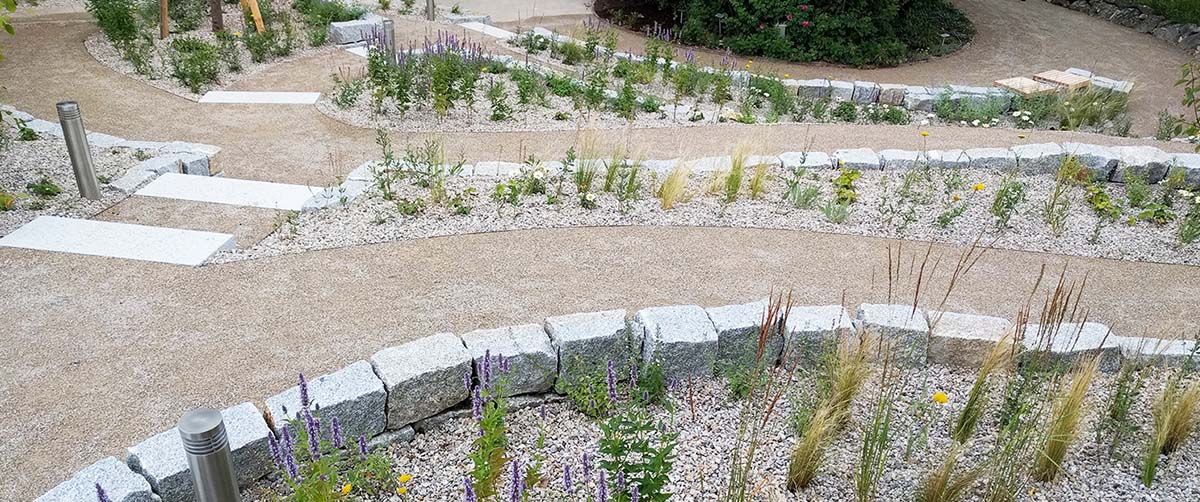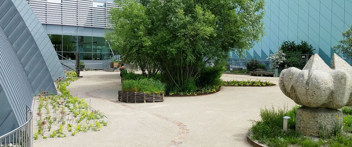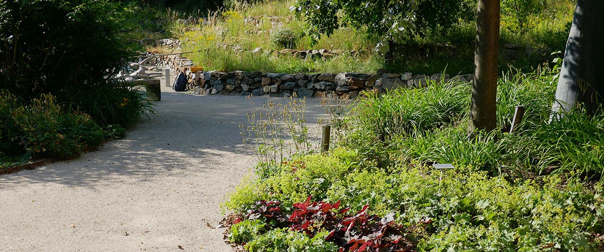 Aufbauend auf das Gestaltungskonzept der Landschaftsarchitekten DI Haidvogl und DI Beitl, haben wir für den Museumsgarten Adaptierungen und gestalterische Erweiterungen vorgenommen. Nachdem 2015 bereits durch grünplan eine „Sackgasse“ in den geschwungenen Verlauf der Weingartenmauern eingelassen wurde, um der Kunstinstallation „Dead End“ von Daniel Spoerri einen gebührenden Rahmen zu geben, ging es 2017 weiter. Die Holzterrasse des Museums wurde mit neuen Lounge-Möbeln und Pflanztrögen attraktiviert und lädt nun zum Verweilen ein. Bepflanzte Hochbeete aus Weidenholz in Blätterform begleiten fortan die BesucherInnen entlang des kulturgeschichtlichen Pfades. Im zweiten Bauabschnitt wurde die Wassergebundene Decke abgetragen, die Infrastruktur (Elektro, Bewässerung, Entwässerung) an die neuen Standards angepasst und die Wegedecke erneut aufgebaut. Die bestehenden Blühinseln wurden überarbeitet und die Bepflanzung zum Teil erneuert.