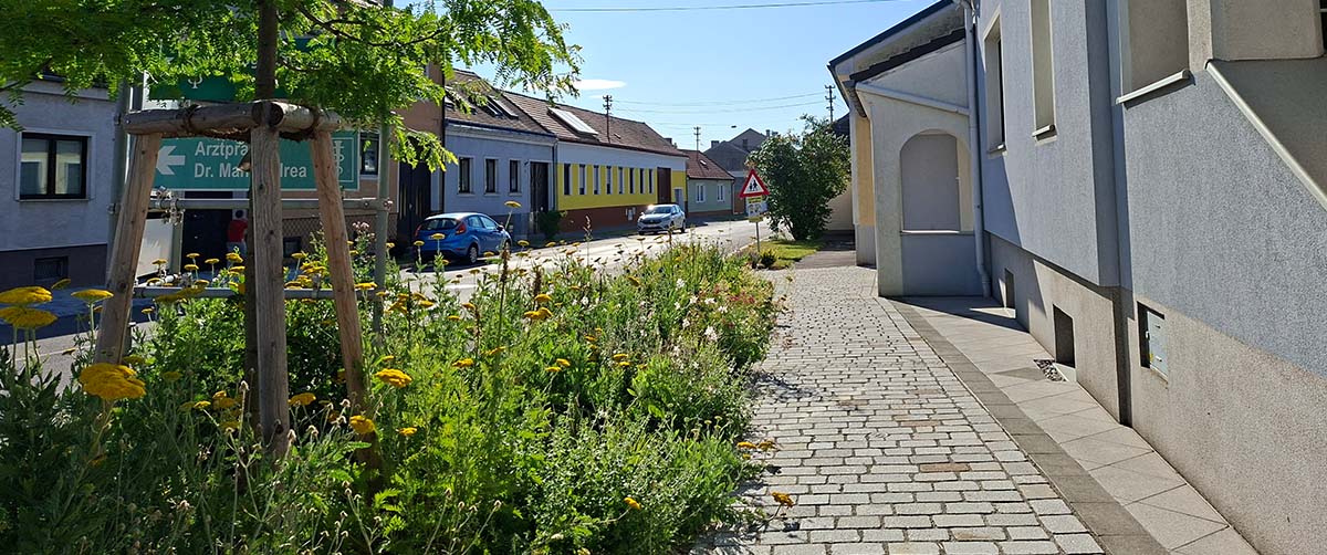 Die Marktgemeinde Pillichsdorf liegt im Weinviertel und ihre zentrale Achse wird durch die L12 gebildet. Nach der Erneuerung der Infrastrukturleitungen wurde durch die Gruppe „Straße“ des Landes NÖ auch die Landesstraße neugestaltet. Durch den integralen Planungsansatz und die Zusammenarbeit der Planungsbüros, dem Land und der Gemeinde wurde die Straße klimafit gemacht.