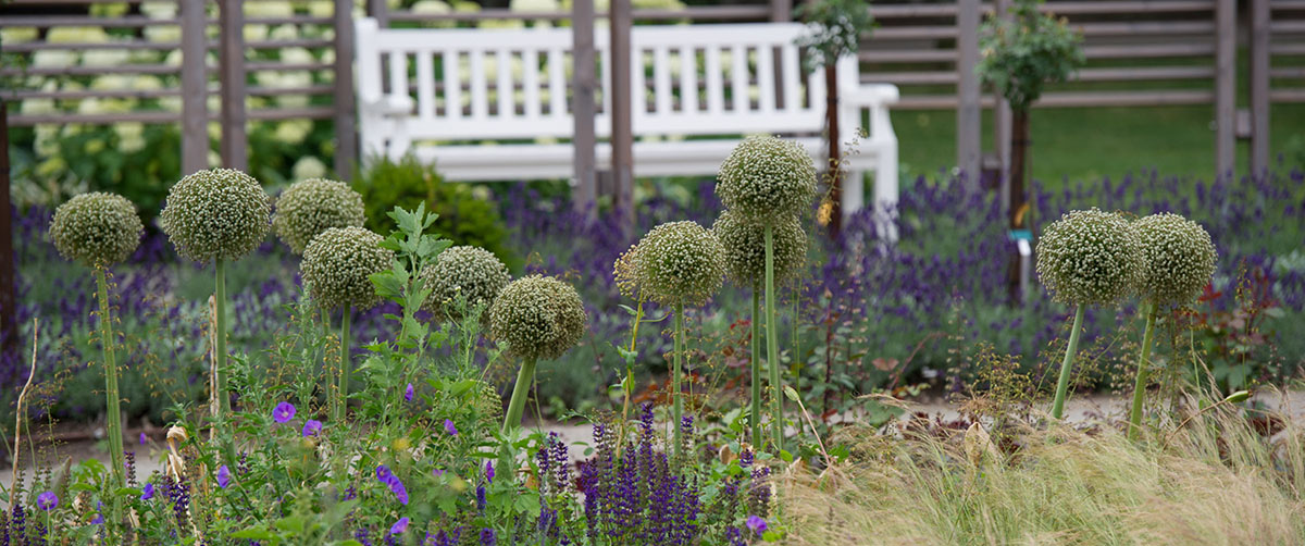 Den Höhepunkt bildet jedoch die große U-förmige Rosenpergola im Süden. Als zeitgenössische Interpretation eines berankten Laubenganges mit schattigen Sitzgelegenheiten lädt sie zum Flanieren und Verweilen unter zum Teil duftenden Rosen ein. Die Pergola ist aus heimischem Lärchenholz gefertigt, weshalb bei der Planung größter Wert auf konstruktiven Holzschutz gelegt wurde. In der Platzmitte befindet sich ein Blumenrondell mit einer Statue der Göttin Flora (Replik des barocken Ausstattungsprogramms). Die farbliche Gestaltung des Rondells folgt dem Farbkreis nach Goethe, mit dementsprechender Pflanzenauswahl.