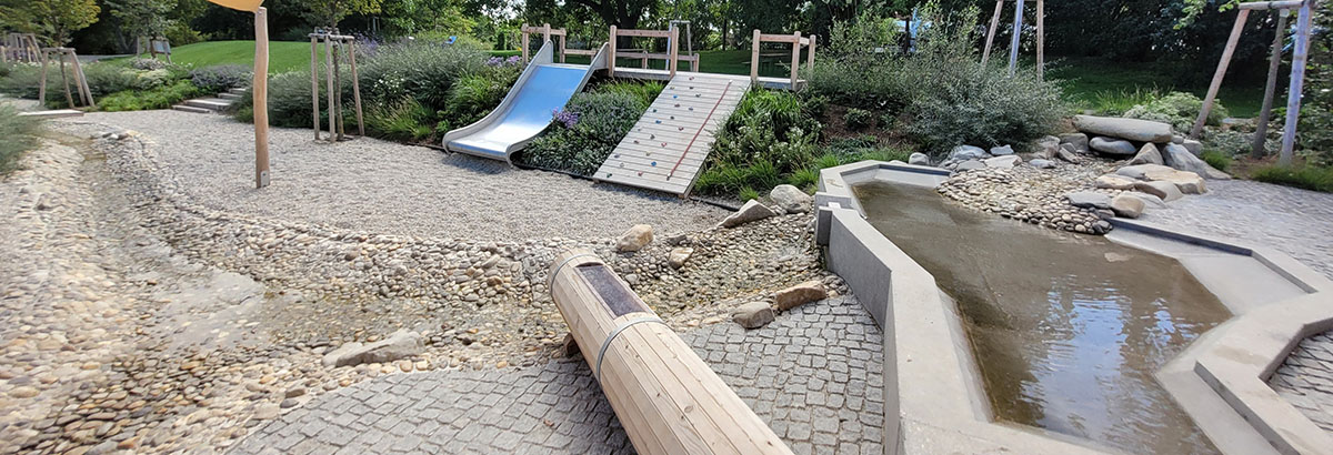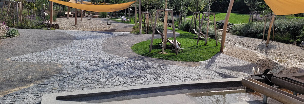 Ein weiterer Baustein ist die Mehrfachnutzung von Wasser: Das in den Spielelementen verwendete Wasser wird unterirdisch gesammelt und zur Bewässerung der Grünflächen wiederverwendet. Dadurch wird der Frischwasserbedarf reduziert und der lokale Wasserkreislauf geschlossen – ein wirtschaftlich und betrieblich relevanter Ansatz für hitzeexponierte Standorte.